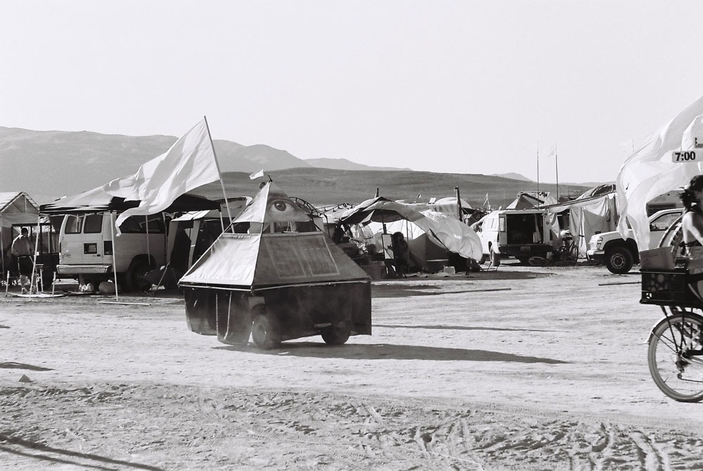 It Was Kind Of Like This was shot in the Californian desert and Nevada’s Black Rock desert. After shooting a collection of shorts and video clips, I needed to clear my head. We took off from California and after a couple of days of driving through the desert, we settled in Black Rock desert. Burning Man was an ironic utopian experience, set in an almost post-apocalyptic landscape. Someone was saying to me the other day, is it true that every year at least one person disappears at Burning Man? I said, it depends on who you’re asking. I mean, you’re walking through the desert for an hour, a dust storm is rolling in and a cop car rolls on by. An ironic dream landscape that you never wake up from. You do feel like the world’s a little different amongst the golden rays. On my first trip to the supermarket after landing in America, the regular Joe standing in front of me bends to reveal his leopard print g-string. It’s inspiring.