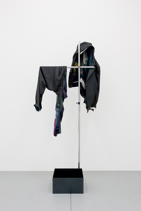 James Deutsher, Sonny and Isabelle (Prologue: Rita), 2011, steel, chrome, powder coating, wool, bone, digital print on silk, mint, 202 x 96 x 66cm